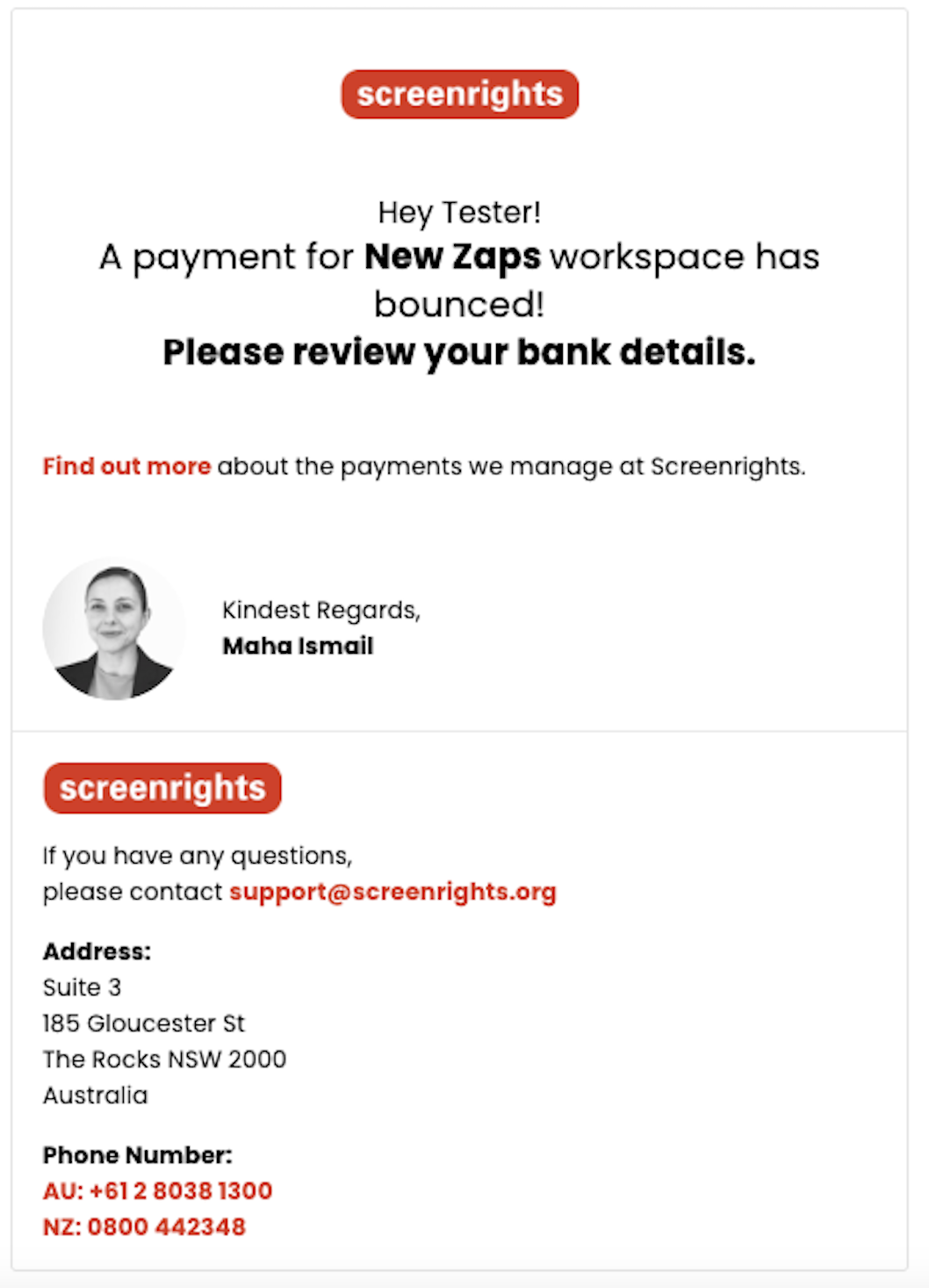 Once you have received this notification, please log in to your Workspace and update your bank details.